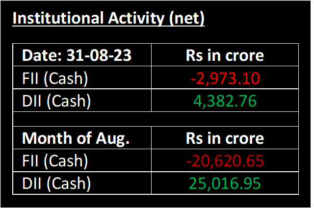 NIFTY: The index opened 28 points higher at 19,375 and made a high of 19,388 before closing at 19,253. Nifty has formed a bearish candlestick pattern on the daily chart with significantly higher volumes on expiry day. Its immediate resistance level is now placed at 19,500 while immediate support is at 19,200.