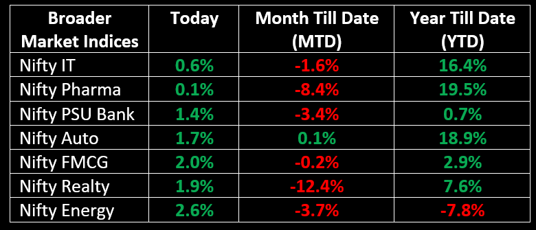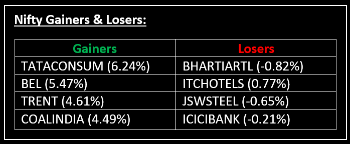 ▪ Gail: Stock jumped nearly 6% after the company reported a 28% YoY growth in consolidated net profit. Revenue from operations grew 6%.
