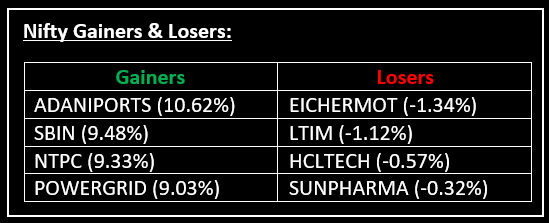 On June 3, Indian equity markets surged more than 3%, marking the biggest single-day gain in three years, as Dalal Street celebrated the outcome of most exit polls predicting a significant win for the BJP-led NDA for the third time in a row. Top Gainer: ADANIPORTS | Top Loser: EICHERMOT