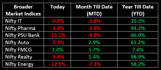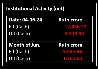 On June 4, Dalal Street witnessed a bloodbath as market participants remained concerned after the BJP-led NDA received a clear mandate but did not return with a much stronger majority as expected in exit polls. Meanwhile, volatility surged with the India VIX jumping 50% to above 31, intraday. This was the biggest jump in the volatility index in at least nine years. Barring FMCG, all other sectoral indices ended in the red, with Realty, Telecom, Metal, Capital Goods, Oil & Gas, Power, and PSU Bank down more than 10% each.