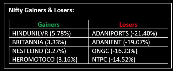 On June 4, Dalal Street witnessed a bloodbath as market participants remained concerned after the BJP-led NDA received a clear mandate but did not return with a much stronger majority as expected in exit polls. Top Gainer: HINDUNILVR | Top Loser: ADANIPORTS