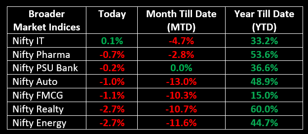 On November 4, Indian markets declined due to sustained foreign investor selling and weaker-than-expected September quarter earnings. Top Gainer: M&M | Top Loser: HEROMOTOCO