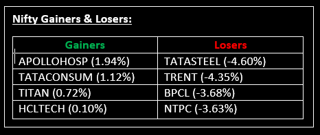 BANK NIFTY: The index opened flat at 50,990 and closed at 49,922. Bank Nifty has formed a long bearish candlestick pattern on the daily chart. Its immediate resistance level is now placed around 50,200 while immediate support is around 49,700.