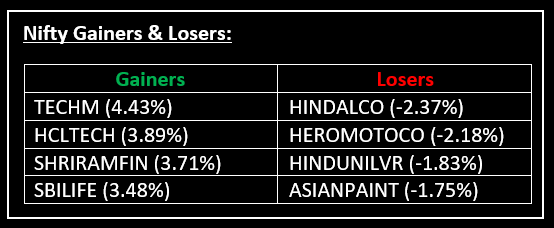BANK NIFTY: The index opened 372 points higher at 49,426 and closed at 49,291. Bank Nifty has formed a long bullish candlestick pattern with a lower shadow on the daily timeframe. Its immediate resistance level is now placed at 49,600 while support is at 49,000.