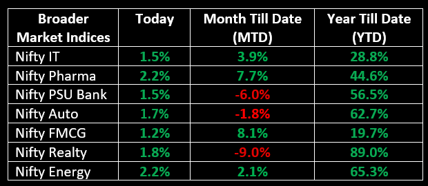 On August 7, the Indian benchmark indices snapped a three-day losing streak and ended higher, with the Nifty closing near the key 24,300 level, driven by buying across sectors and ahead of the RBI policy outcome tomorrow. The market opened higher amid positive global cues but saw some profit booking at higher levels as the day progressed, ultimately ending on a strong note. All sectoral indices ended in the green, with metal, healthcare, media, power, telecom, oil & gas, and capital goods up 2-3%.