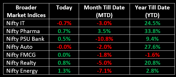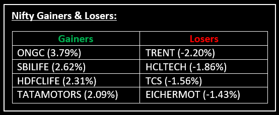 On January 7, Indian equity indices recovered some of their previous session losses and ended the day on a positive note in a volatile trading session. Top Gainer: ONGC | Top Loser: TRENT