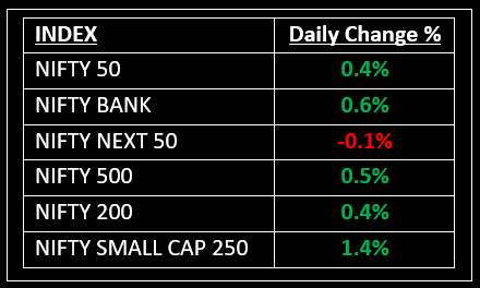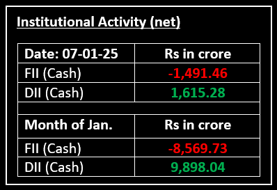 On January 7, Indian equity indices recovered some of their previous session losses and ended the day on a positive note in a volatile trading session. The market opened strongly, supported by positive global cues, and extended gains through the day. However, profit booking in the second half pared some of the intraday gains, with investors appearing cautious at higher levels.