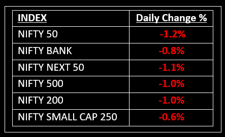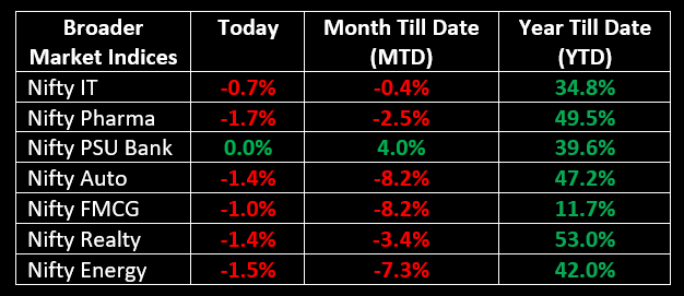 On November 7th, Indian benchmark indices erased gains from previous sessions, ending a two-day winning streak due to broad-based selling across sectors as investors stayed cautious ahead of the Federal Open Market Committee (FOMC) outcome later tonight.