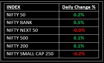 Sector performance was mixed. Realty, Financial Services, IT and Private Banks saw gains ranging from 0.3% to 1%, while Consumer Durables, Pharma, PSU Banks, FMCG and Auto sectors declined between 0.25% and 2.3%.