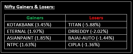 ▪ Kotak Mahindra Bank: Stock jumped 3.5% as the bank reported a 14% YoY growth in its loan book, reaching Rs 4.45 lakh crore, while deposits rose 15% YoY to Rs 5.13 lakh crore.