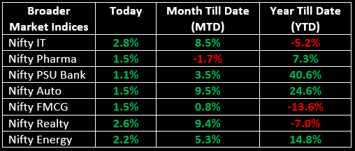 - Midcap & Smallcap: Outperformed the benchmarks, with both indices rising over 2%.