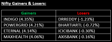 - Top Sector: Nifty IT led the charge with a 2.8% surge, supported by positive global cues.