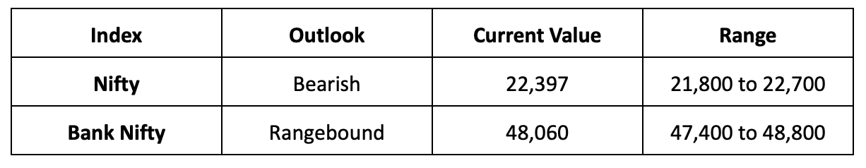 - Given the prevailing bearish mood, we expect Nifty to remain under pressure next week, likely trading between 21,800 and 22,700 levels.