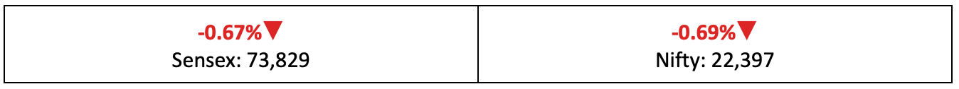 - Broader markets took a bigger hit, with the BSE Large-cap, Mid-cap, and Small-cap indices losing 0.8%, 2%, and nearly 4%, respectively.