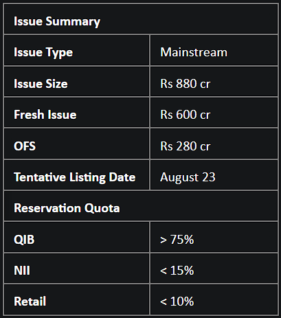 The TVS Group company aims to raise Rs 880 crore via its initial public offering (IPO), which comprises fresh equity shares of up to Rs 600 crore and an offer for sale of 14,213,198 shares. The book build issue will remain open for subscribers till Monday, 14 August 2023.