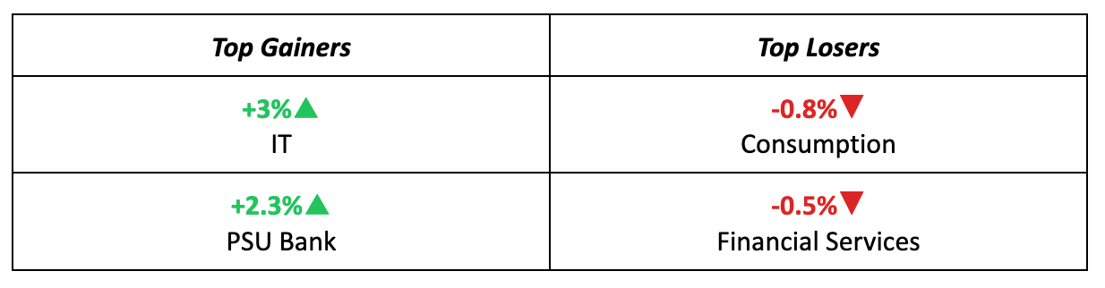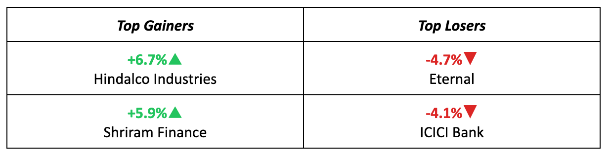 - The India VIX eased 0.33%, reflecting steady investor sentiment amid ongoing earnings announcements and geopolitical developments.