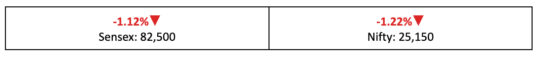 - Among broader indices, the BSE Large-Cap and Mid-Cap indices fell by 1% while the BSE Small-Cap index shed 0.6%.