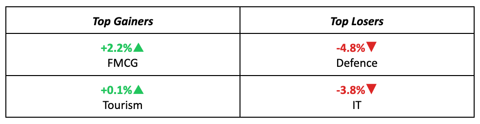 - Kotak Mahindra Bank also performed well, surging 4.2% after publishing a strong Q1 business update that highlighted steady growth. Read more here.