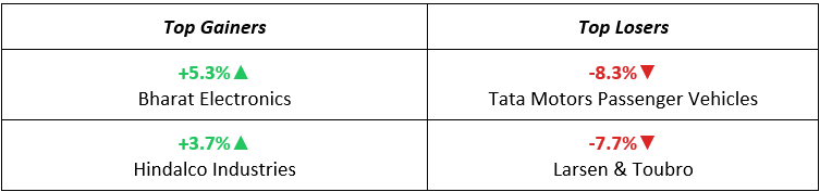 - Hindalco emerged as the runner-up, gaining 3.7% as aluminium prices climbed amid supply concerns linked to disruptions in the Middle East, supporting the broader metals sector.