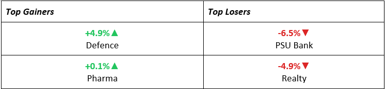 - Geopolitical risks remain elevated, and with global cues turning increasingly cautious, FIIs and large institutions continue to maintain a clear risk-off stance.