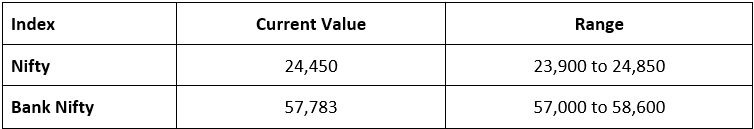 - We expect this cautious undertone to persist into the coming week, with the Nifty likely to trade in the 23,900 to 24,850 range as participants wait for stronger directional triggers.