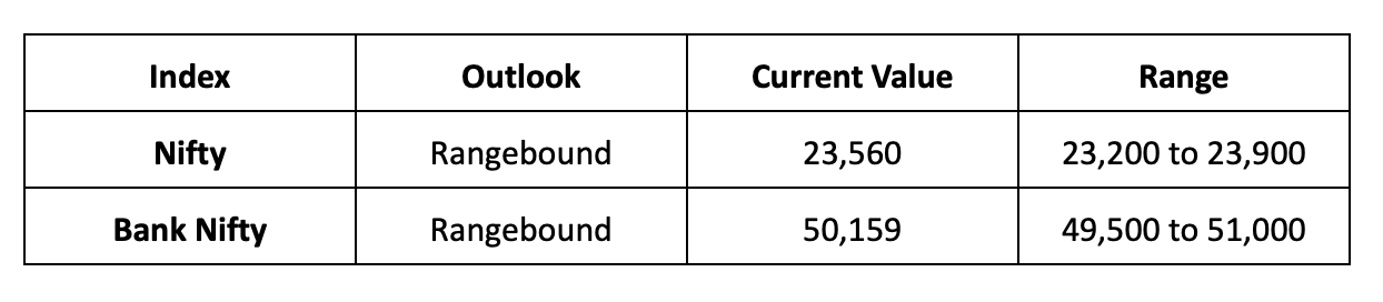 - Caution is likely to persist in the coming week, with the index expected to trade within a range of 23,200 to 23,900.