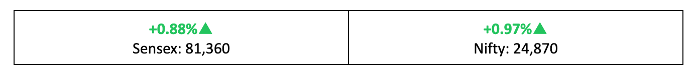 - Despite this, key benchmark indices recorded nearly 1% gains on a weekly basis. The broader indices performed even better, with BSE Small and Mid-cap indices rising by 2%, while BSE Large-cap added 1%.