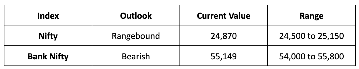 - We anticipate the Nifty to remain range-bound next week, with a likely trading range between 24,500 and 25,150.