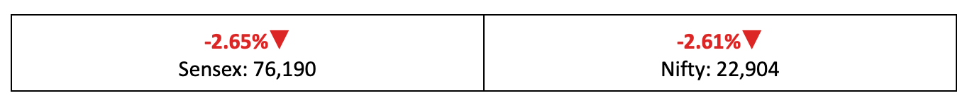 - The Nifty dropped 2.61% over the week. In the broader market, the BSE Large-Cap and Mid-Cap indices fell 2.5% each, while the BSE Small-Cap index declined 1.6%.