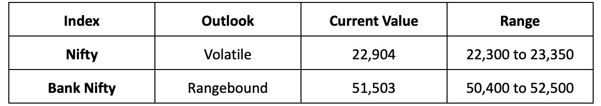- With a packed-week ahead, the Nifty is expected to stay volatile, likely swinging between 22,300 and 23,350 levels. We’re keeping a close eye on FMCG, banking, and financial sectors this week.